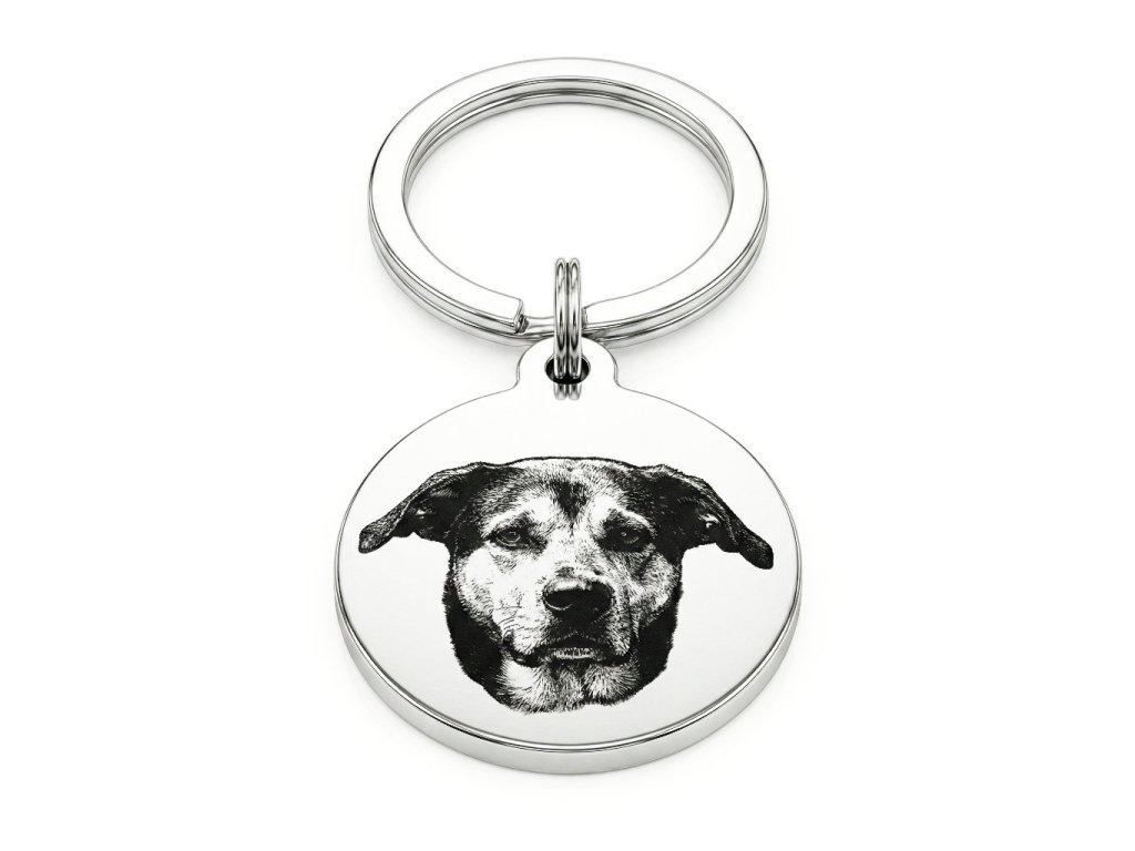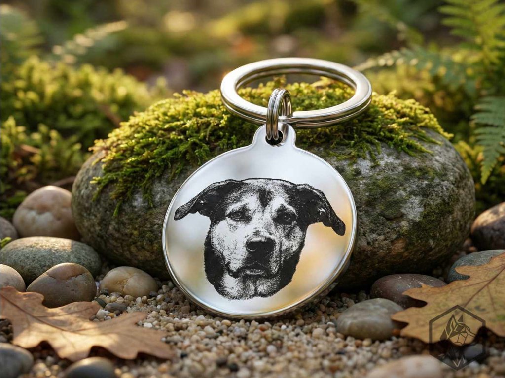 Tento gravírovaný přívěsek se psem je originální dárek pro pejskaře, který vyrábíme na míru z fotografie vašeho psa. Každý přívěsek je jedinečný a navržený tak, aby motiv psa na nerezové ploše působil čistě a esteticky.